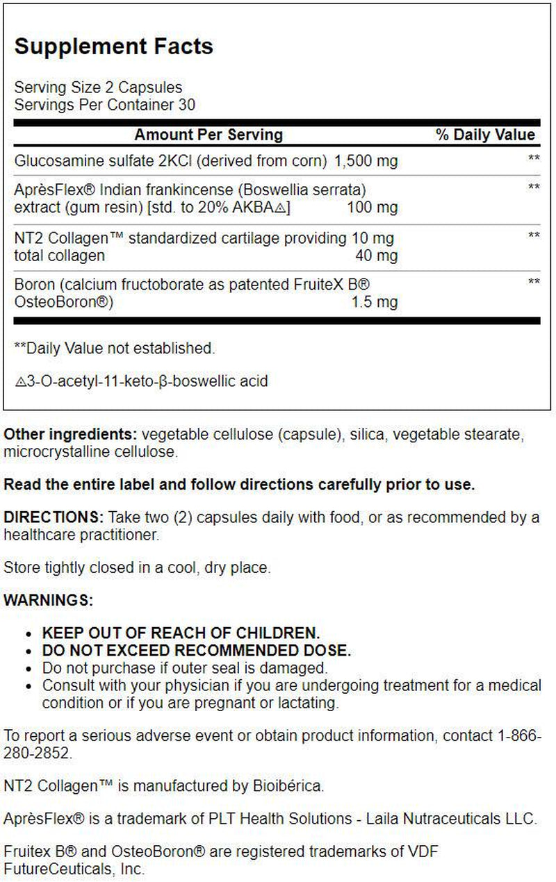 - OUR MOST COMPRENSIVE JOINT HEALTH SUPPLEMENT - Nutrition, joint health and joint comfort are intimately connected. This comprehensive joint health supplement helps support your range of motion, promotes joint comfort and supports joint health with innovative ingredients like type II collagen, Boswellia, glucosamine and boron.