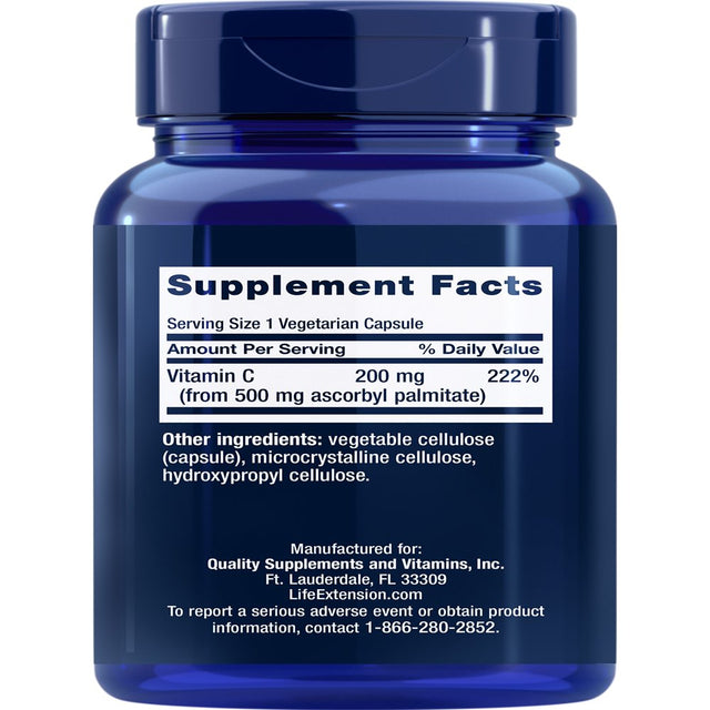 Life Extension Ascorbyl Palmitate, 500 Mg - Fat-Soluble Vitamin C Supplement - Gluten-Free, Non-Gmo - 100 Vegetarian Capsules