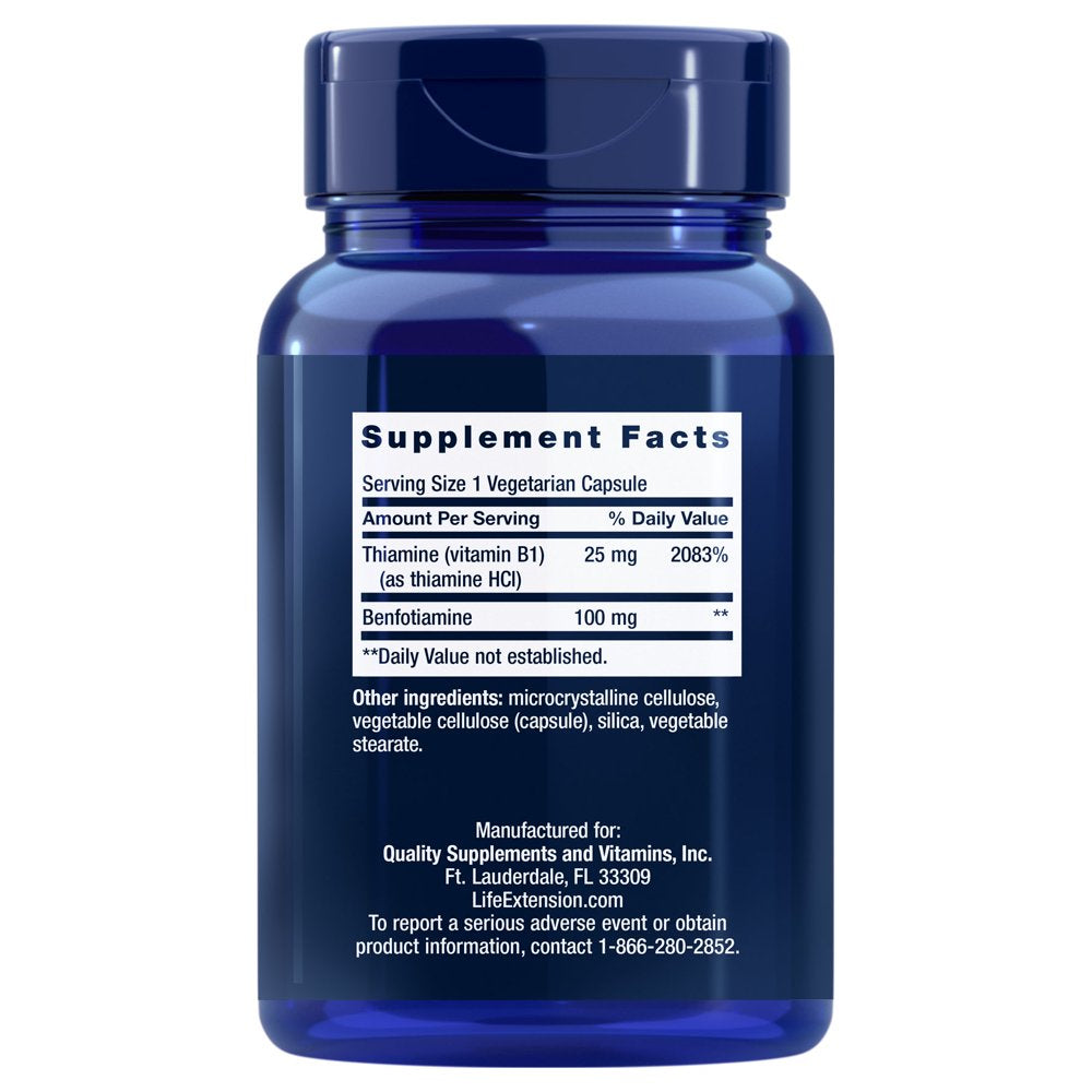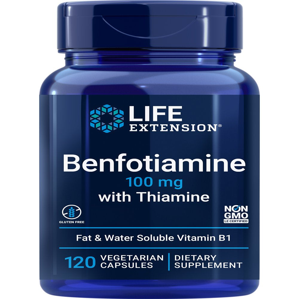 Life Extension Benfotiamine with Thiamine, 100 mg - Fat & Water Soluble Vitamin B1 - Gluten-Free, Non-GMO, 120 Vegetarian Capsules