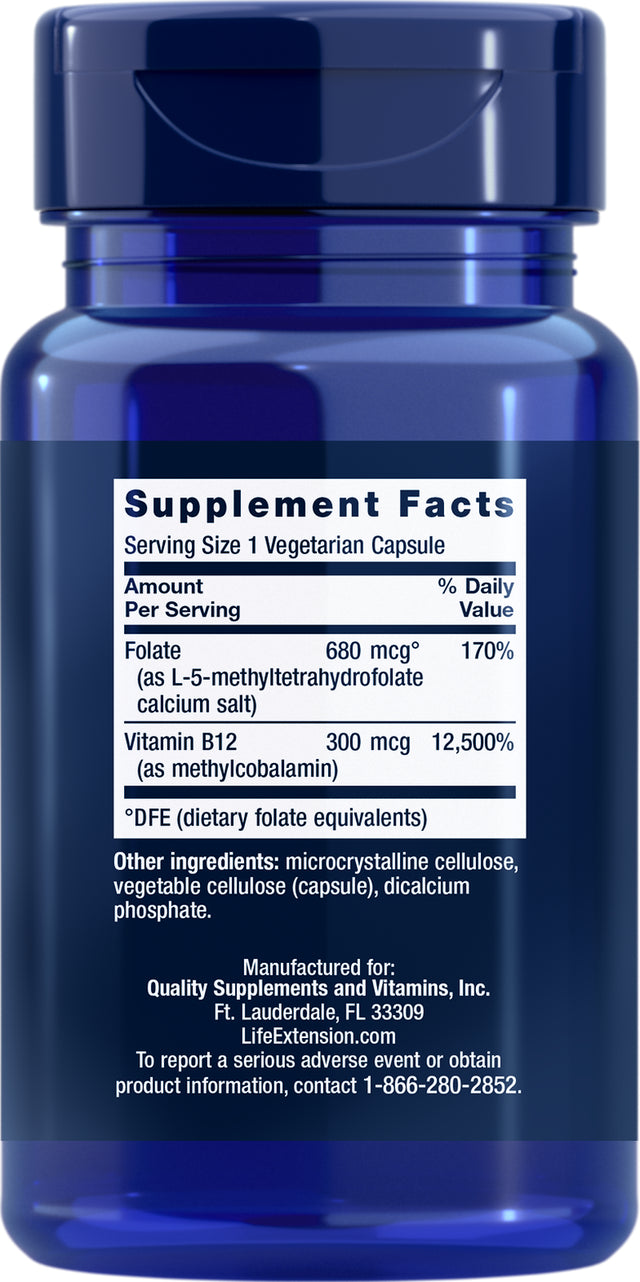 Life Extension Bioactive Folate & Vitamin B12, 150 Vegetarian Capsules
