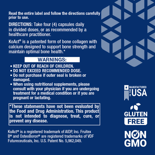 - COLLAGEN AND CALCIUM - When it comes to your bones, calcium and collagen are intimately connected. KoAct is a special combo of chelated calcium and hydrolyzed collagen peptides.Together, they support optimal bone density and strength.