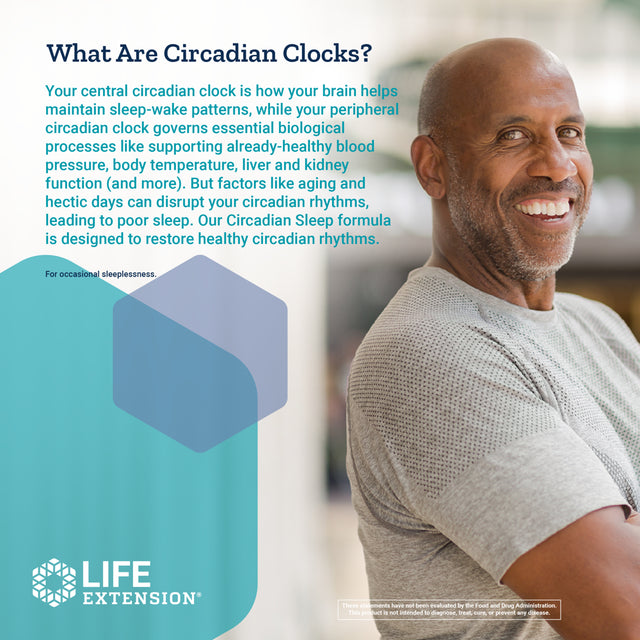 - WHAT ARE CIRCADIAN CLOCKS? - Your central circadian clock is how your brain helps maintain sleep-wake patterns, while your peripheral circadian clock governs essential biological processes like supporting already-healthy blood pressure, body temperature, liver and kidney function (and more). Factors like aging and hectic days can disrupt your circadian rhythms, leading to poor sleep. Our Circadian Sleep formula is designed to restore healthy circadian rhythms.