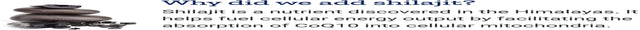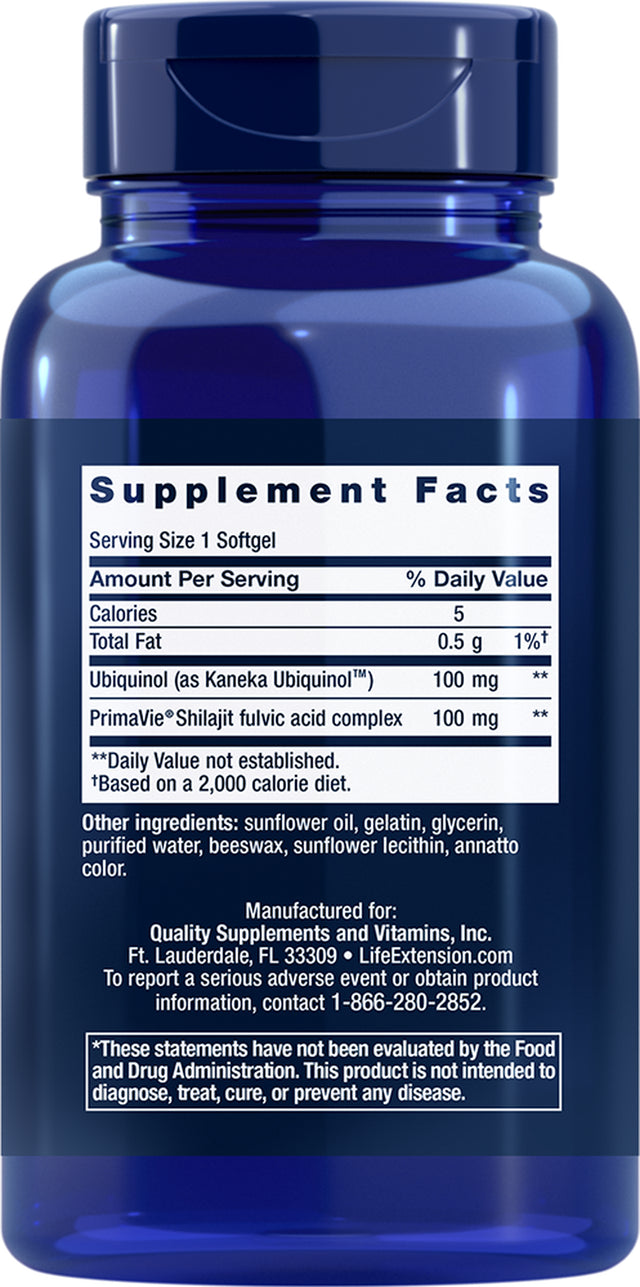 Super Ubiquinol CoQ10 with Enhanced Mitochondrial Support is formulated with a highly bioavailable ubiquinol form of coenzyme Q10 and augmented with the adaptogen PrimaVie shilajit, which is shown to further increase CoQ10 absorption, promote cardiovascular health and help promote youthful cellular energy production.