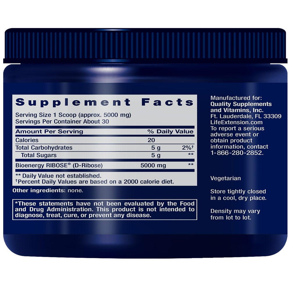 Life Extension D-Ribose Powder, 150 Grams - Helps Maintain Healthy Energy Levels in Heart, Muscles & Replenish Healthy Cellular Energy after Exercise - Gluten-Free, Non-Gmo, Vegetarian