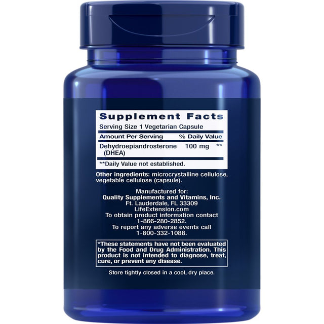 Life Extension DHEA, 100 Mg - Promotes Optimal Hormone Balance & Overall Health - Gluten-Free, Non-Gmo - 60 Vegetarian Capsules