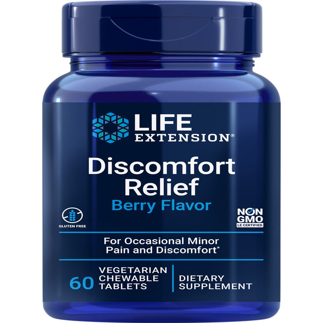 Life Extension Discomfort Relief (Berry Flavor) - for Occasional Minor Pain & Discomfort - Gluten-Free, Non-Gmo - 60 Vegetarian Chewable Tablets