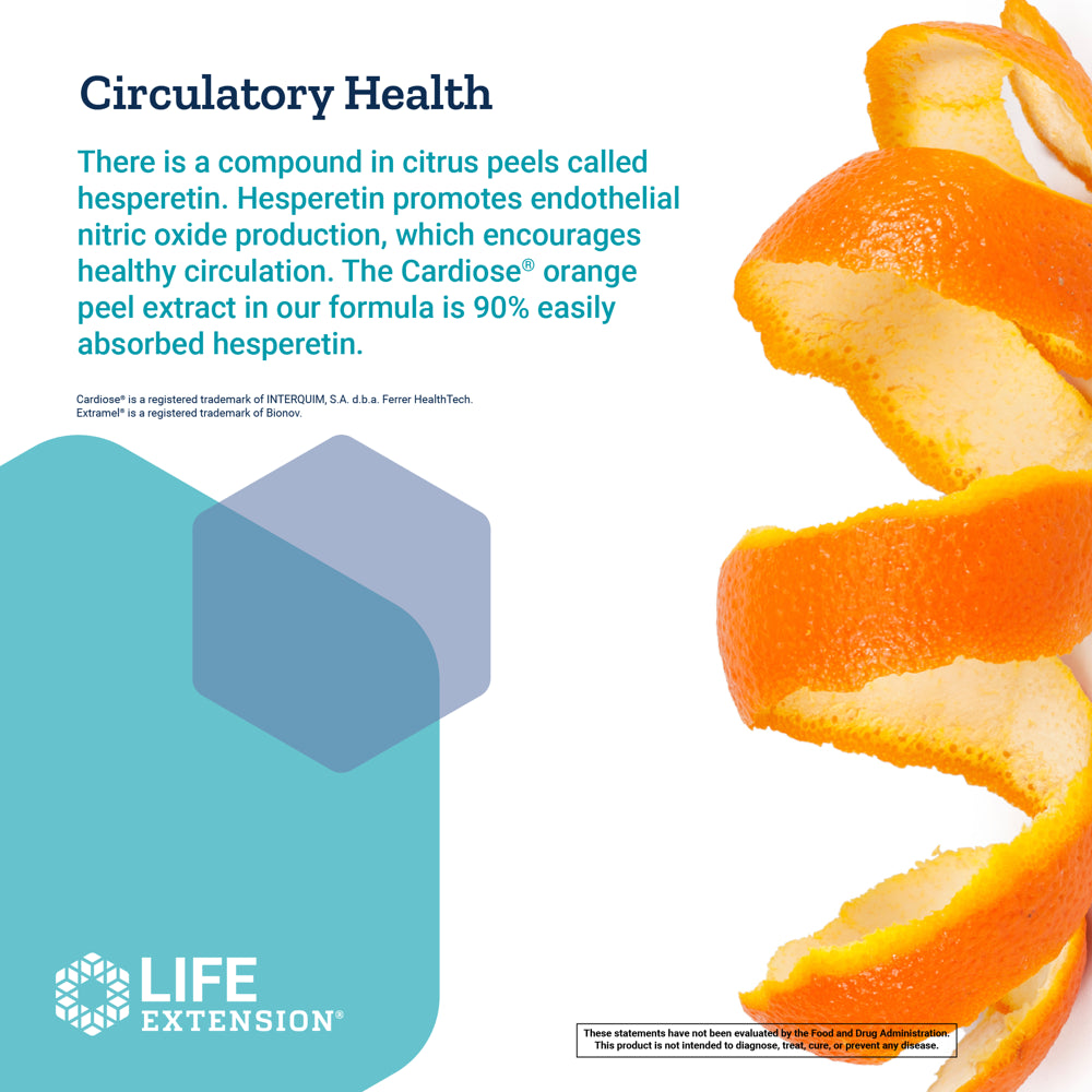 - CIRCULATORY HEALTH - There is a compound in citrus peels called hesperetin. Hesperetin promotes endothelial nitric oxide production, which encourages healthy circulation. The Cardiose® orange peel extract in our formula is 90% easily absorbed hesperetin.