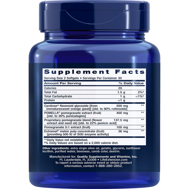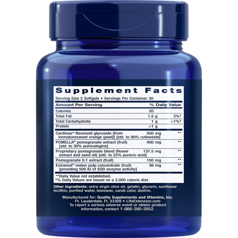 Life Extension Endothelial Defense™ Pomegranate plus - Heart Health Support Starts with Your Blood Vessels - Gluten-Free, Non-Gmo - 60 Softgels