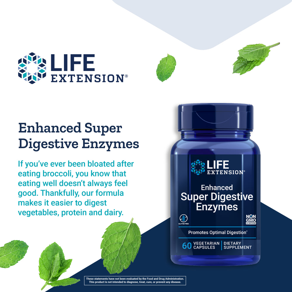 Life Extension Enhanced Super Digestive Enzymes - Supports Digestion & Comfort, Especially for Plant-Based Diets - Non-Gmo - 60 Vegetarian Capsules