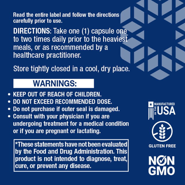 - OPTIMAL DIGESTION SUPPORTS OPTIMAL HEALTH - This innovative vegetarian and non-GMO formula promotes healthy digestion of hard-to-digest starches, sugars and cellulose from vegetables, as well as proteins, fats, carbohydrates and lactose.