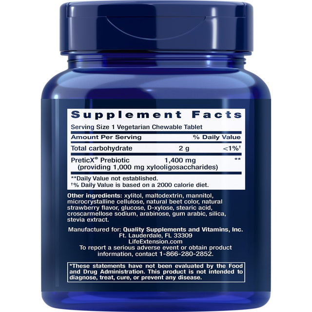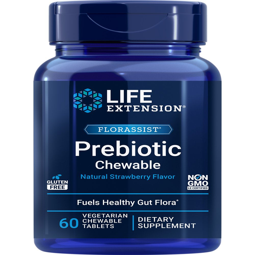 Life Extension FLORASSIST® Prebiotic Chewable (Strawberry) - Prebiotic Supplement Provides Fuel for Gut Flora - Gluten-Free, Non-Gmo - 60 Vegetarian Chewable Tablets