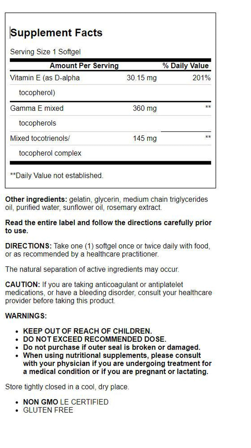 Life Extension Gamma E Mixed Tocopherols & Tocotrienols – Complete Vitamin E Spectrum, Antioxidant Protection – Non-Gmo, Gluten-Free – 60 Softgels