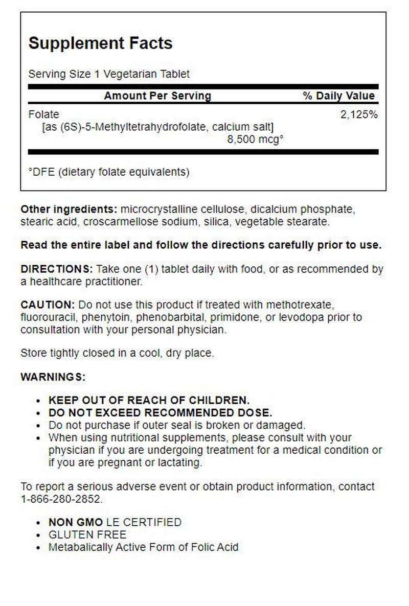 - High potency – This powerful folate supplement contains 8500 mcg of 5-MTHF folate, the bioactive form of folic acid. Choosing 5-MTHF instead of regular folic acid is a good option because not everyone can convert folate to 5-MTHF.