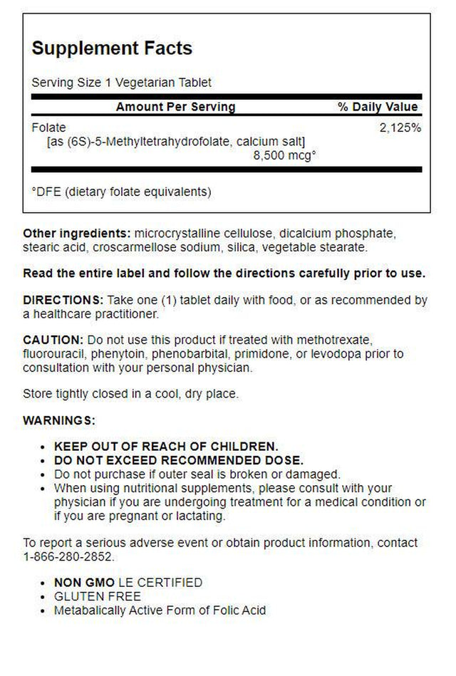 Since not everyone has enough of the necessary enzymatic activity necessary to convert folic acid to 5-MTHF (the active form of folate), this highly potent dose of 5-MTHF makes it easier for you to get all the health benefits of the B vitamin folate. Indeed, you get 8500 mcg of dietary folate equivalents in every tablet. High Potency Optimized Folate helps maintain already normal levels of homocysteine, an important marker of heart health, and is also good for your brain health—specifically, maintaining healthy cognition. This heart and brain health supplement is also gluten-free, non-GMO and vegetarian.