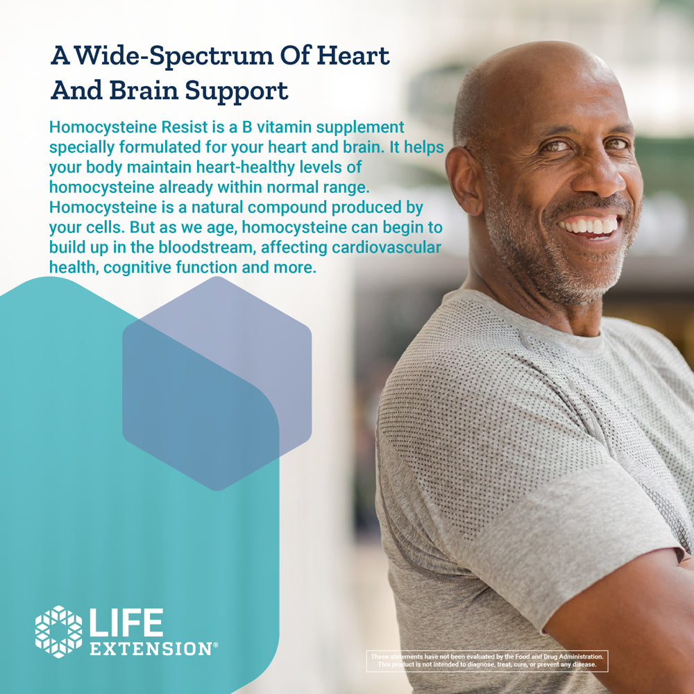 Life Extension Homocysteine Resist - Vitamin B Formulation for Heart & Brain Health Support - Gluten-Free, Non-Gmo - 60 Vegetarian Capsules (2-Month Supply)