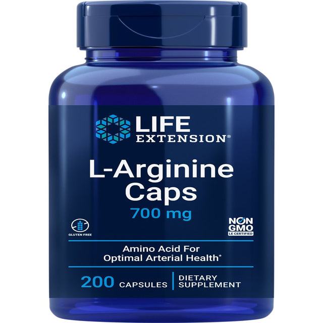 Life Extension L-Arginine Caps, 700 Mg - Promotes Arterial Health - Gluten-Free, Non-Gmo - 200 Capsules