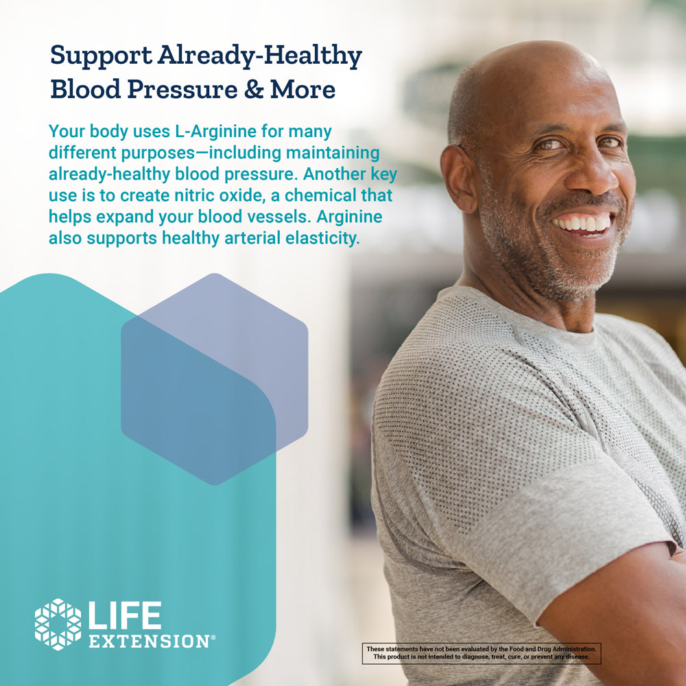 - SUPPORT ALREADY-HEALTHY BLOOD PRESSURE & MORE - Your body uses L-Arginine for many different purposes—including maintaining already-healthy blood pressure. Another key use is to create nitric oxide, a chemical that helps expand your blood vessels. Arginine also supports healthy arterial elasticity.