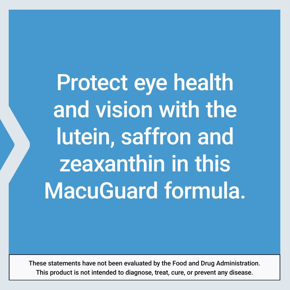 Step up your eye care routine with scientifically studied nutrients for vision support. Protect the eye’s delicate photoreceptor cells, promote retinal health, and support healthy vision with this MacuGuard formula. It has vitamins and nutrients like lutein, zeaxanthin and saffron, which have been shown to benefit eye health. Lutein, zeaxanthin and meso-zeaxanthin protect your peepers from both digital device blue light and ultraviolet light. They also help defend the eyes against oxidative stress. To help get these nutrients where you need them most—the retina of the eye—this formula uses phospholipids to promote absorption. And did your eyes spy the saffron extract in this formula? It has been added to help promote sharp vision and ocular health.
