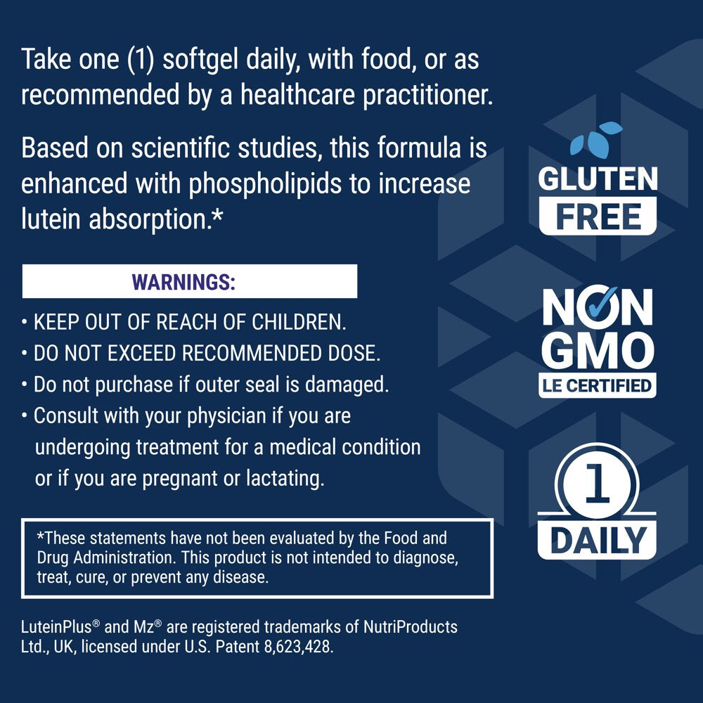- Lutein & zeaxanthin for macular support – Protect the eye’s delicate photoreceptor cells with formula nutrients like lutein, zeaxanthin and meso-zeaxanthin, which promote macular and retinal health. Protect your eyes from ultraviolet light and the effects of the blue light emitted by digital devices and oxidative stress with lutein and zeaxanthin.