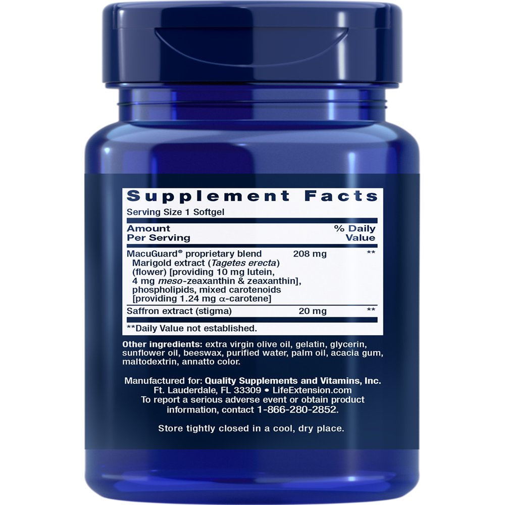 Life Extension Macuguard Ocular Support with Saffron – Eye Health Supplement for Healthy Vision – with Lutein, Meso-Zeaxanthin, Zeaxanthin, Saffron – Gluten-Free, Non-Gmo – 60 Softgels