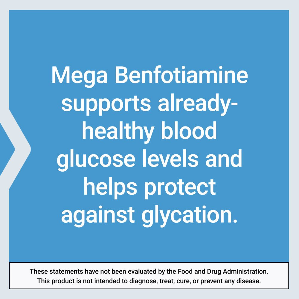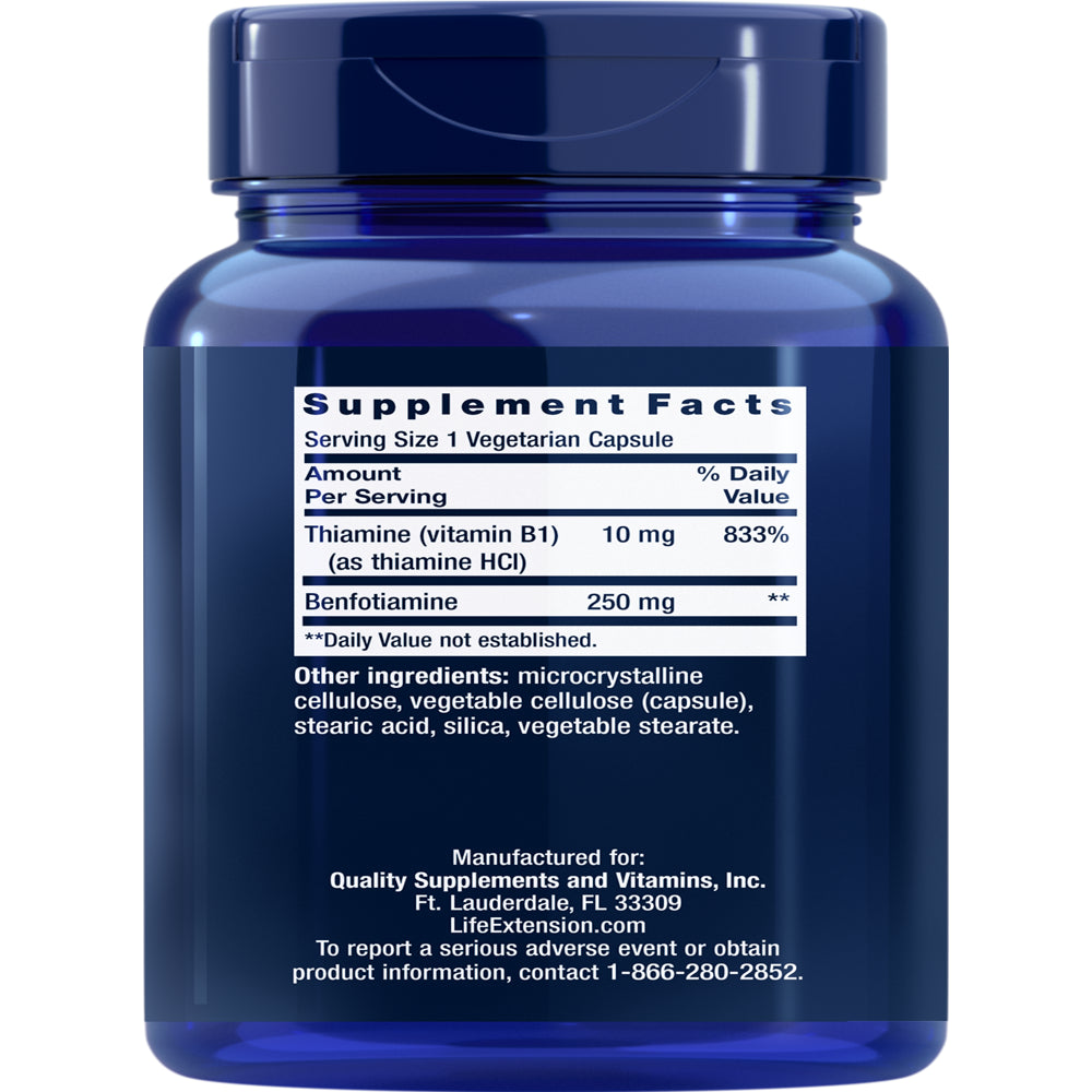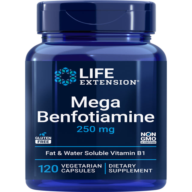 Life Extension Mega Benfotiamine, 250 Mg, a Fat-Soluble Form of Thiamine, Healthy Glucose Metabolism, Ultra-Bioavailable Vitamin B1, High Potency, Gluten-Free, Non-Gmo, Vegetarian, 120 Capsules