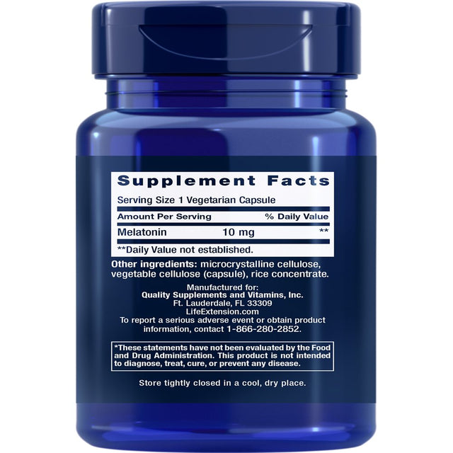 Life Extension Melatonin, 10 Mg, Healthy Dose, Our Highest Available Dosage, for Sleep Support, Healthy Immune Response, Oxidative Stress Defense, Vegetarian, 60 Capsules