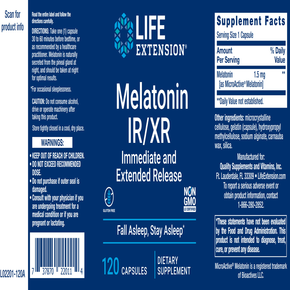 - Melatonin IR/XR, 120 Capsules