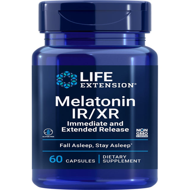 Life Extension Melatonin IR/XR - Immediate & Extended-Release - up to 7 Hours Sleep Support, Regular/Healthy Sleep Patterns, Easier to Stay Asleep - Gluten-Free, Non-Gmo - 60 Capsules (2-Month Supply) - 1 / 60 is backordered and will ship as soon as it is back in stock.