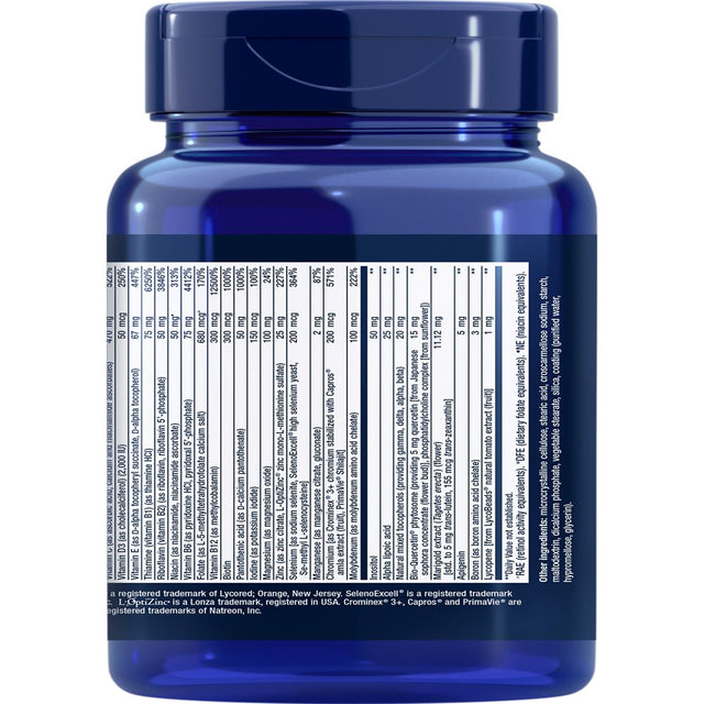 One-Per-Day Multivitamin makes it easy to get over 25 different vitamins, minerals and extracts, many of which meet or exceed RDAs. One-Per-Day has benefits for eye health, bone and heart health, healthy cell division, energy and immune health, already-healthy blood sugar, brain and nerve health, and even promotes a healthy inflammatory response, thanks to its comprehensive formula. This multivitamin formula includes vitamins A, B (including B6 and B12), E and K along with health must-haves vitamin C and vitamin D3, plus healthy minerals and extracts (including magnesium, zinc, selenium, inositol, apigenin, boron and more). This quality multivitamin is soy-free, gluten-free and non-GMO and contains more bioavailable, bioactive vitamin forms, like the B vitamin folate 5-MTHF, zinc citrate, the mixed tocopherol form of vitamin E and more. Get the most out of your multivitamin with Life Extension One-Per-Day tablets.
