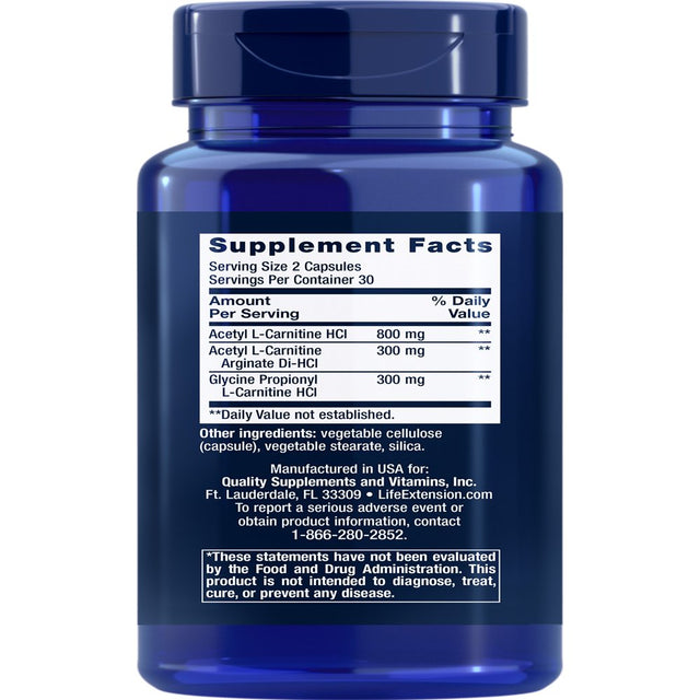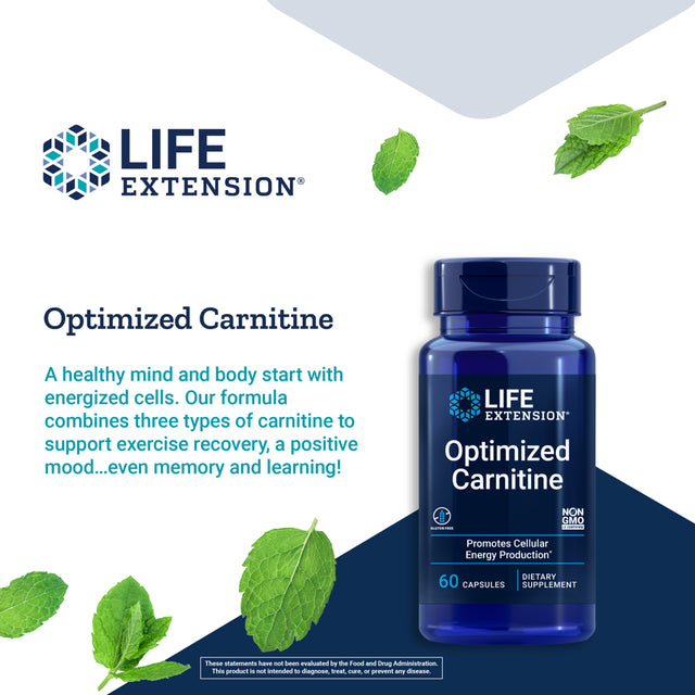 Optimized Carnitine from Life Extension is a natural dietary supplement that helps promote cellular energy production. Optimized Carnitine combines these advanced forms of carnitine--acetyl-L-carnitine, glycine propionyl-L-carnitine, and acetyl-L-carnitine arginate--in a single formula that provides balanced, broad-spectrum support for cellular energy production throughout the body.