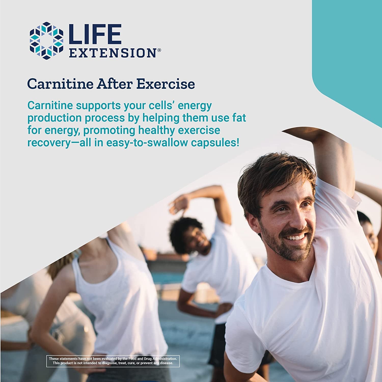 Life Extension Optimized Carnitine – L-Carnitine Supplement - Supports Heart, Brain Health& Exercise Recovery – Gluten-Free – Non-Gmo – 60 Capsules
