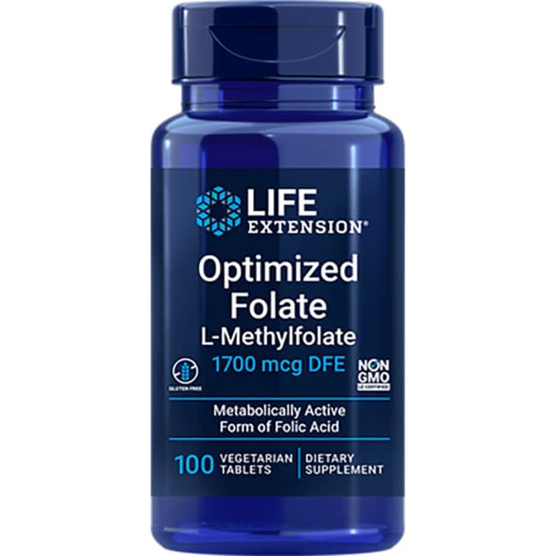 Life Extension Optimized Folate – L-Methylfolate – Heart & Brain Support, Healthy Homocysteine Levels – Non-Gmo, Gluten-Free, Vegetarian – 1700 Mcg DFE, 100 Vegetarian Tablets