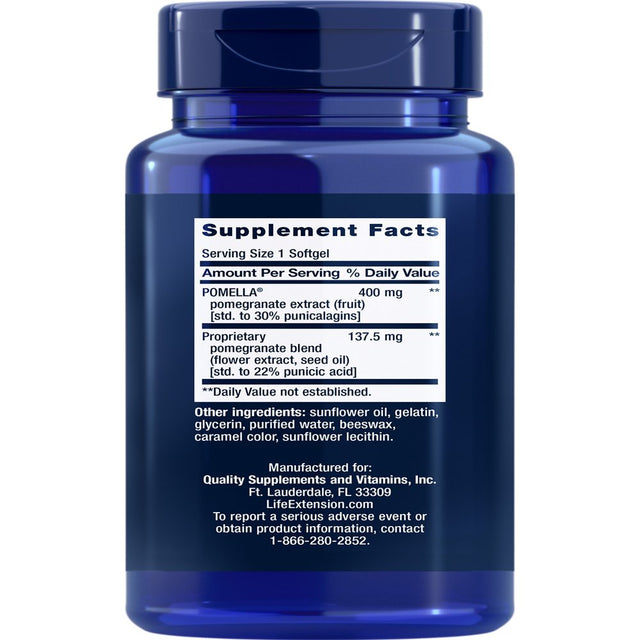 Life Extension Pomegranate Complete - Comprehensive Superfood Health Supplement, Supports Cardiovascular Endothelial Health - Gluten-Free, Non-Gmo - 30 Softgels