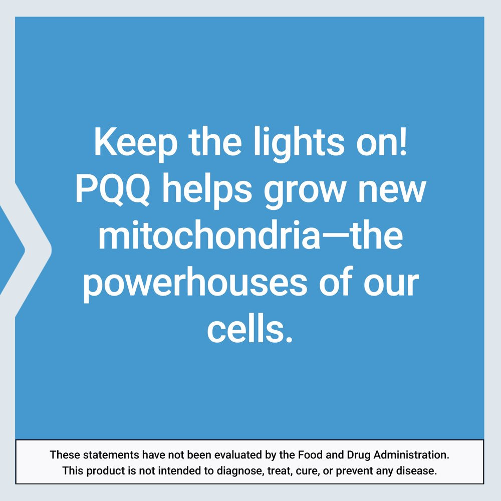 Grow new mitochondria – Cellular mitochondria are tiny structures that create energy your cells need to function. But as you age, your number of functioning mitochondria declines. PQQ is an energy support formula that promotes new mitochondrial growth.