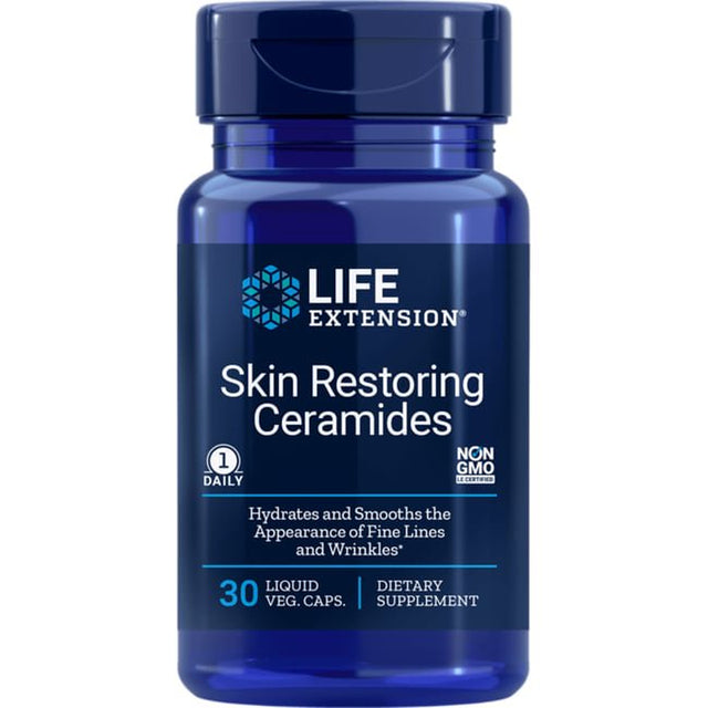 Life Extension Skin Restoring Ceramides – Wheat Oil Extract – Hydrates & Smooths the Appearance of Fine Lines & Wrinkles – Gluten-Free, Non-Gmo, 1-Daily, Vegetarian – 30 Liquid Capsules