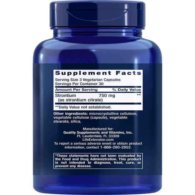 Life Extension Strontium Caps, 750 Mg - Bone Health Support Supplement - Gluten-Free, Non-Gmo - 90 Vegetarian Capsules