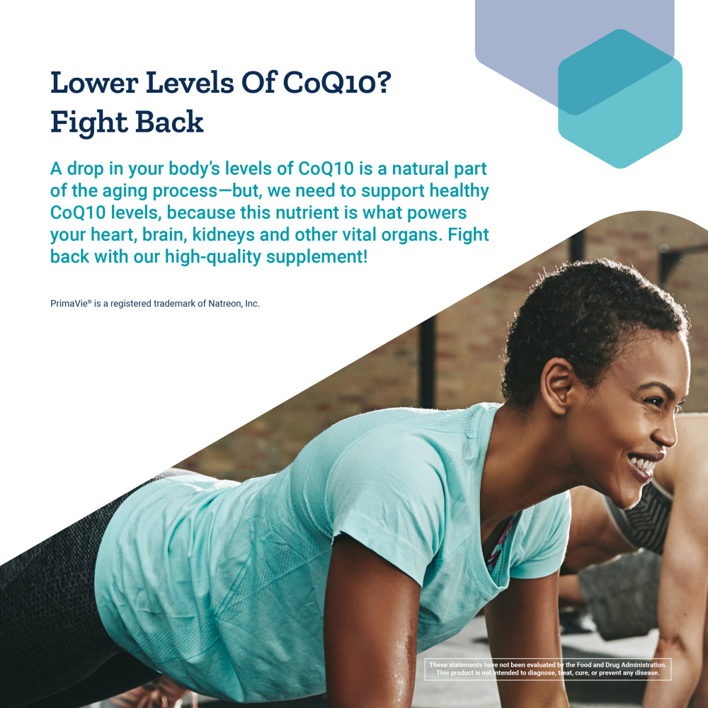 - LOWER LEVELS OF COQ10? FIGHT BACK - A drop in your body’s levels of CoQ10 is a natural part of the aging process—but, we need to support healthy CoQ10 levels, because this nutrient is what powers your heart, brain, kidneys and other vital organs. Fight back with our high-quality supplement!