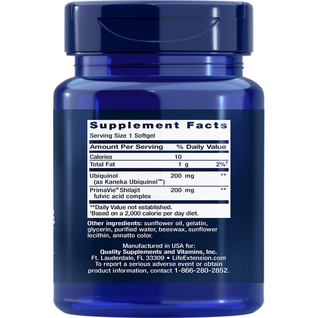 Life Extension Super Ubiquinol Coq10 with Enhanced Mitochondrial Support – 200 Mg, Shilajit – Promotes Heart Health, Helps Relieve General Fatigue, Cell Energy, Oxidative Stress – Gluten-Free, Non-Gmo