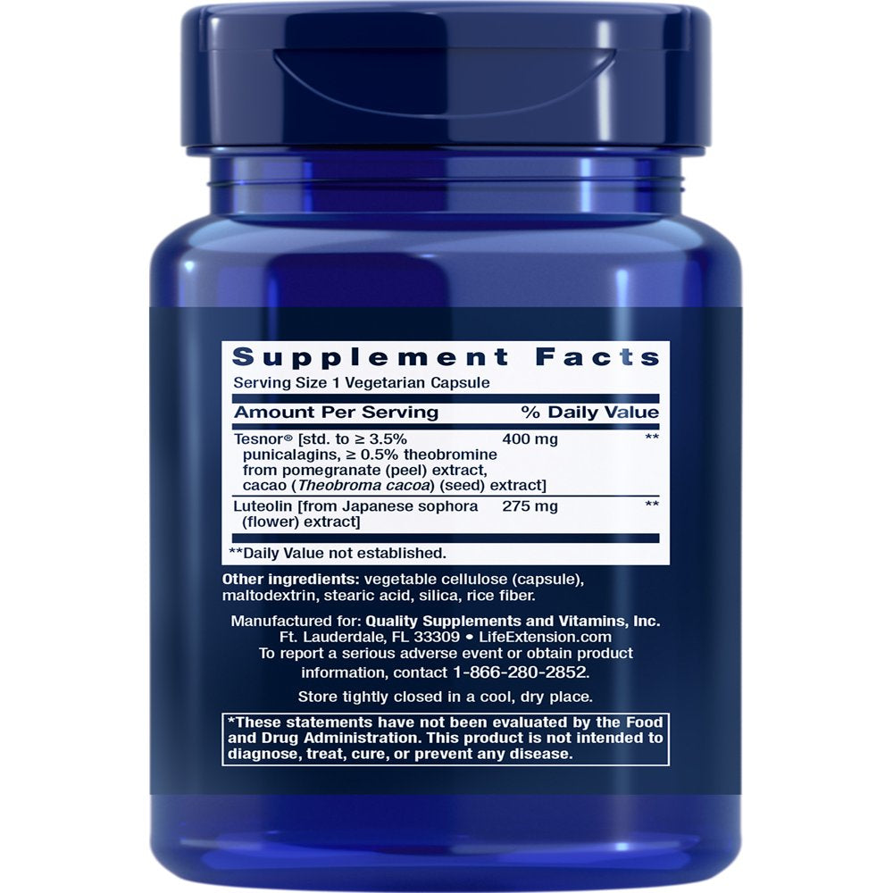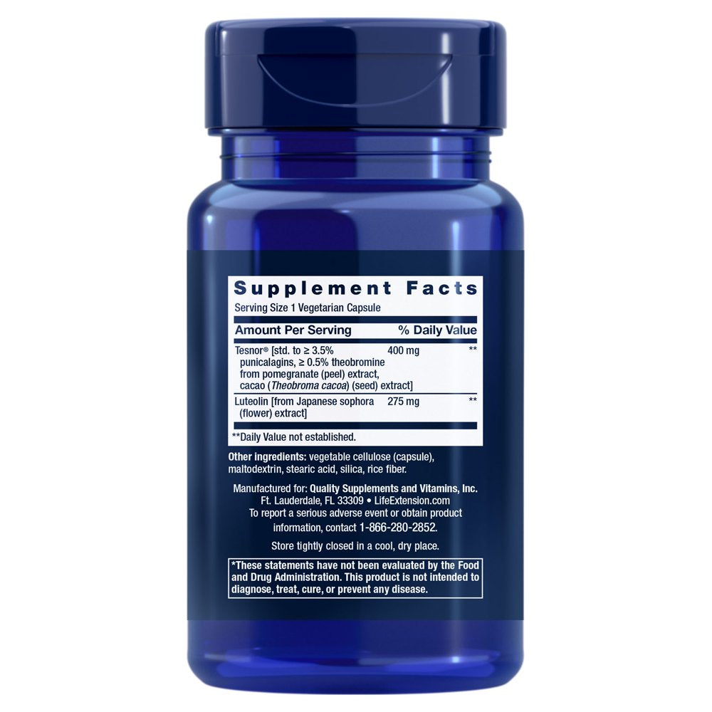 - INHIBITS TESTOSTERONE CONVERSION - Our formula combines a patented blend of pomegranate and cacao extracts with luteolin. This pomegranate-cacao combination encourages youthful levels of free and total testosterone, and the plant flavonoid luteolin both inhibits an enzyme that converts testosterone into estrogen and encourages the production of pregnenolone, testosterone’s precursor hormone.