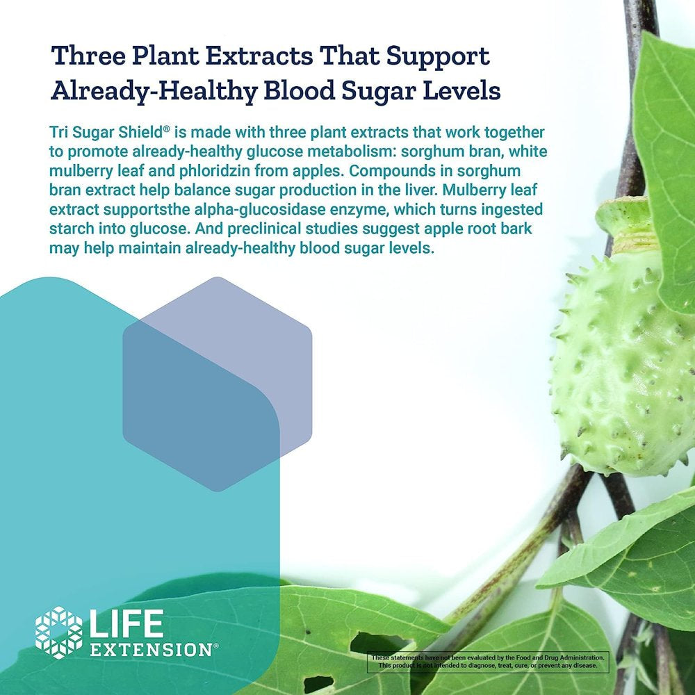 Life Extension Tri Sugar Shield - Promote Healthy Glucose Metabolism - Sorghum Bran, White Mulberry and Phloridzin Apple Extract - Gluten Free, Non-Gom, Vegetarian - 60 Capsules