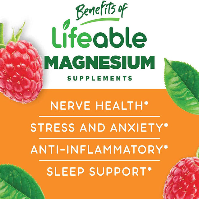 Lifeable Magnesium Citrate for Kids - Great Tasting Natural Flavor Gummy Supplement - Gluten Free Vegetarian GMO-Free Chewable - May Support Sleep, Calm, and Stress Relief - 90 Gummies