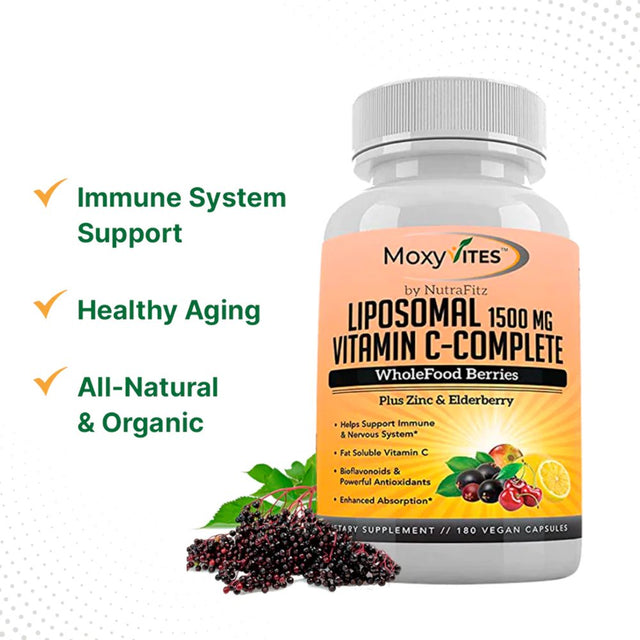 Liposomal Vitamin C with Zinc Organic Elderberry 1500Mg, 180 Capsules