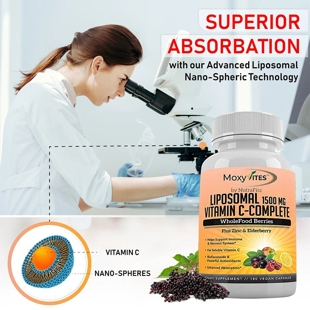 - THE BEST COMPLETE VITAMIN C SUPPLEMENT AVAILABLE! With Zinc, Organic Elderberry, Acerola Cherry, Camu Camu, Amla Berry & Bioflavonoids (INCREASE the BIO-AVAILABILITY of the ascorbic acid). Give your immune system a powerful emergency C boost it needs. Don’t settle for 500mg or 1000mg Liposomal C supplements. Our ALL in ONE Vitamin C supplement just for you. Each bottle contains EASY TO SWALLOW 180 Vegetable Capsules (plant-derived) for a full 3 month supply! Ordinary Vit C cannot compete!