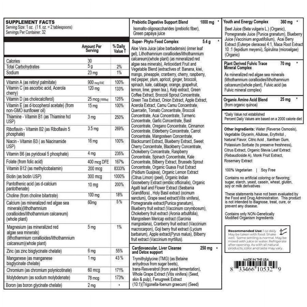 When you commit to weight loss and your health its no longer about surviving. Its about thriving. You want to give your body the nutrients it needs not only so you can stay nourished but also to rev metabolism boost energy and support your bodys systems.Any multivitamin can give you the essential nutrients but for BariatricPal Advanced Complete Multiple Supplement A to Zinc is just the beginning. Our formula has the essential vitamins and minerals you need to stay healthy while losing weight and living a healthy lifestyle plus unique plant-based blends to support energy digestion heart health liver health and metabolism.BariatricPal Advanced Complete Multiple Supplement contains:Over 20 essential vitamins and mineralsOver 200 NutrientsOmega 3 6 and 9 BlendNatural Carotenoid BlendPrebiotic Multi-Fiber Complex and Digestive SupportSuper Phyto-Food ComplexEssential Amino Acid ComplexBariatricPal Advanced Complete Multiple Supplement supports absorption by delivering nutrients in a liquid form. Also the nutrients are in their organic forms making them highly bioavailable.These liquid nutrients are ideal for weight loss surgery patients and anyone else who has trouble swallowing pills and chewable tablets. It comes in wild berry flavor.Supports a healthy liver heart digestive system and metabolism.Antioxidants and polyphenols from 10 vegetables 29 fruit extracts or concentrates 12 spices and herbal extracts 3 sea vegetables and aloe vera juiceNo artificial coloring or flavoringGluten freeVegetarianYeast free
