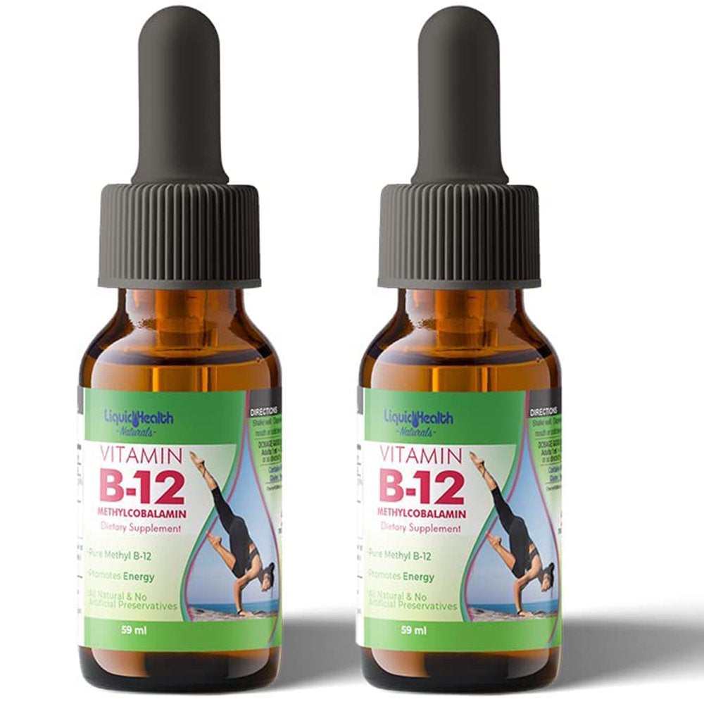 Liquid Health 2 Pack Vitamin B12 Liquid Pure Methyl Drops, Methylcobalamin Energy Boost Natural Vegan Safe Sublingual Hydroxocobalamin -2 Fl Oz