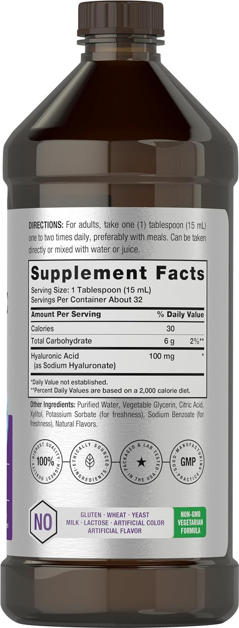 - LIQUID FORMULA: Delivers 100 mg of Hyaluronic Acid in each tablespoon (15 mL) serving