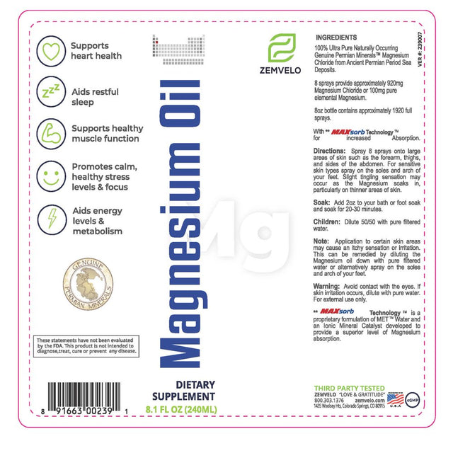 Liquid Ionic Magnesium Oil (8 Oz - 96 Day Supply)