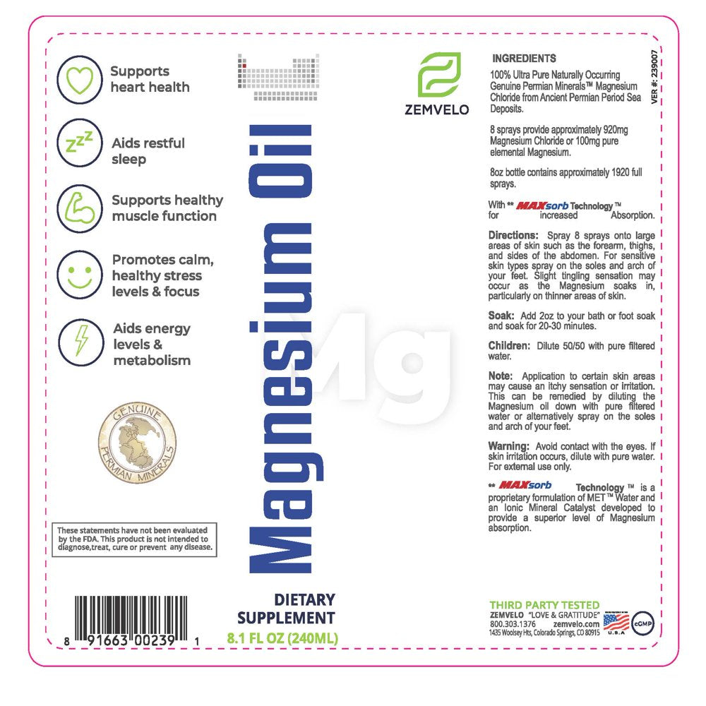 Pure Magnesium Oil Spray. Professional Grade. 100% Vegan. Concentrated Formula. Far Greater Absorbtion Than Pills