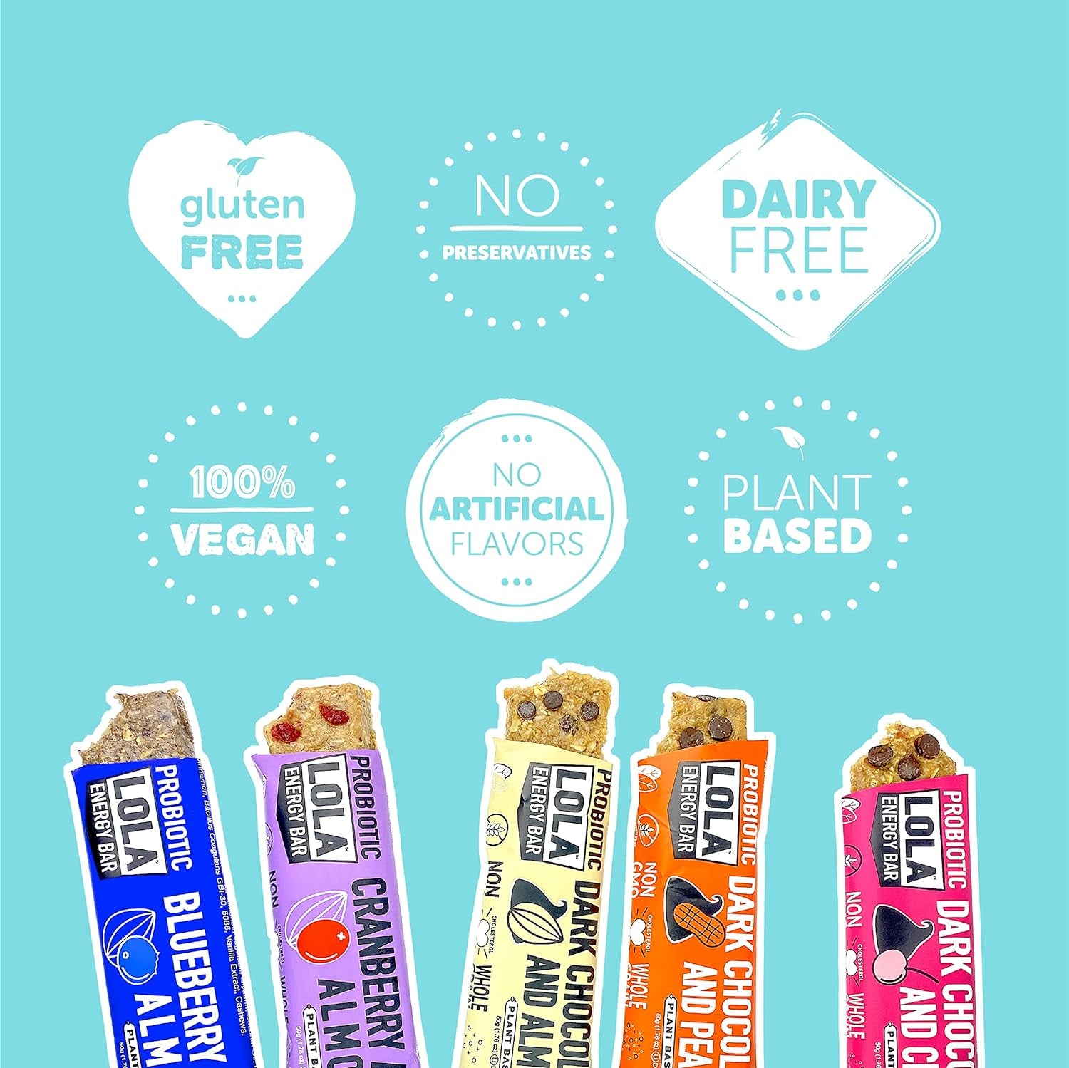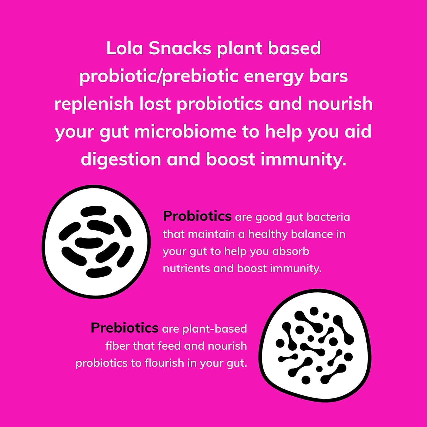 LOLA SNACKS Healthy Vegan Granola Bars I Probiotics for Women & Men I Dairy, Soy & Gluten Free Snacks I Natural Plant Based Low FODMAP Superfood I Kosher, Organic, Non-Gmo for Adults & Kids
