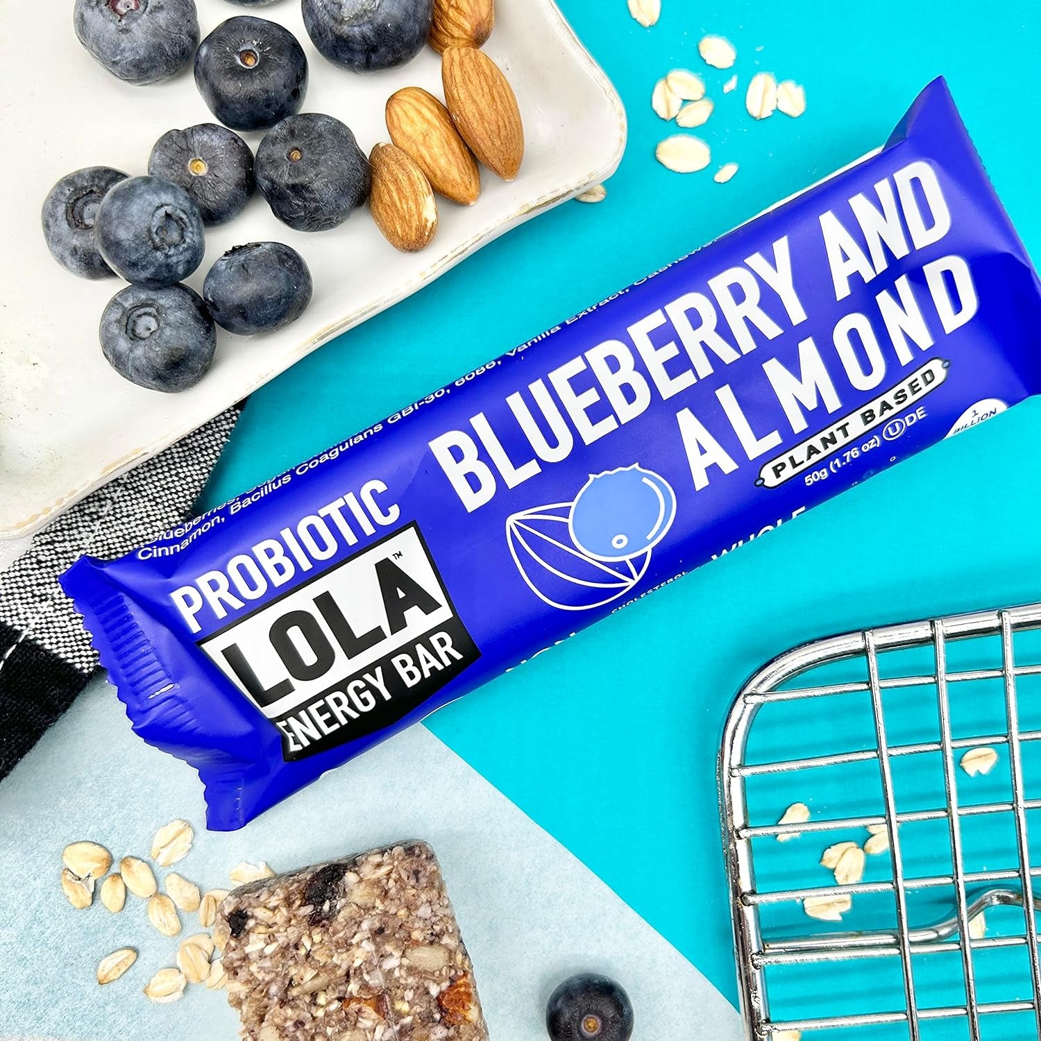 • BLUEBERRY ALMOND PREBIOTIC AND PROBIOTIC SUPERFOOD: Get your daily dose of probiotics. With 1 Billion CFUs (colony forming Units) of spore forming probiotics, Lola Snack bars are packed with good bacteria that remain dormant until they hit your gut where they aid in digestion. The probiotics are supported by high fiber prebiotics that nourish your gut microbiome and microflora.